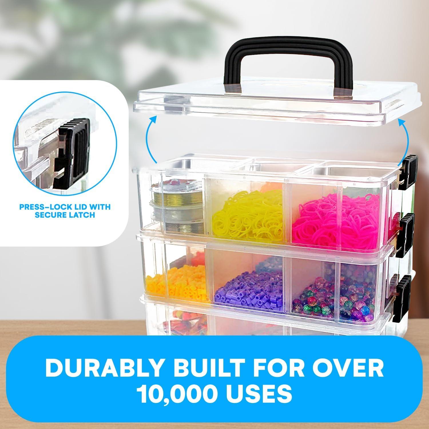 Three Stackable Layers for More Space: This 3-tier stackable storage container gives you vertical efficiency without clutter; Great for home crafters or sewing organizer for sewing supplies