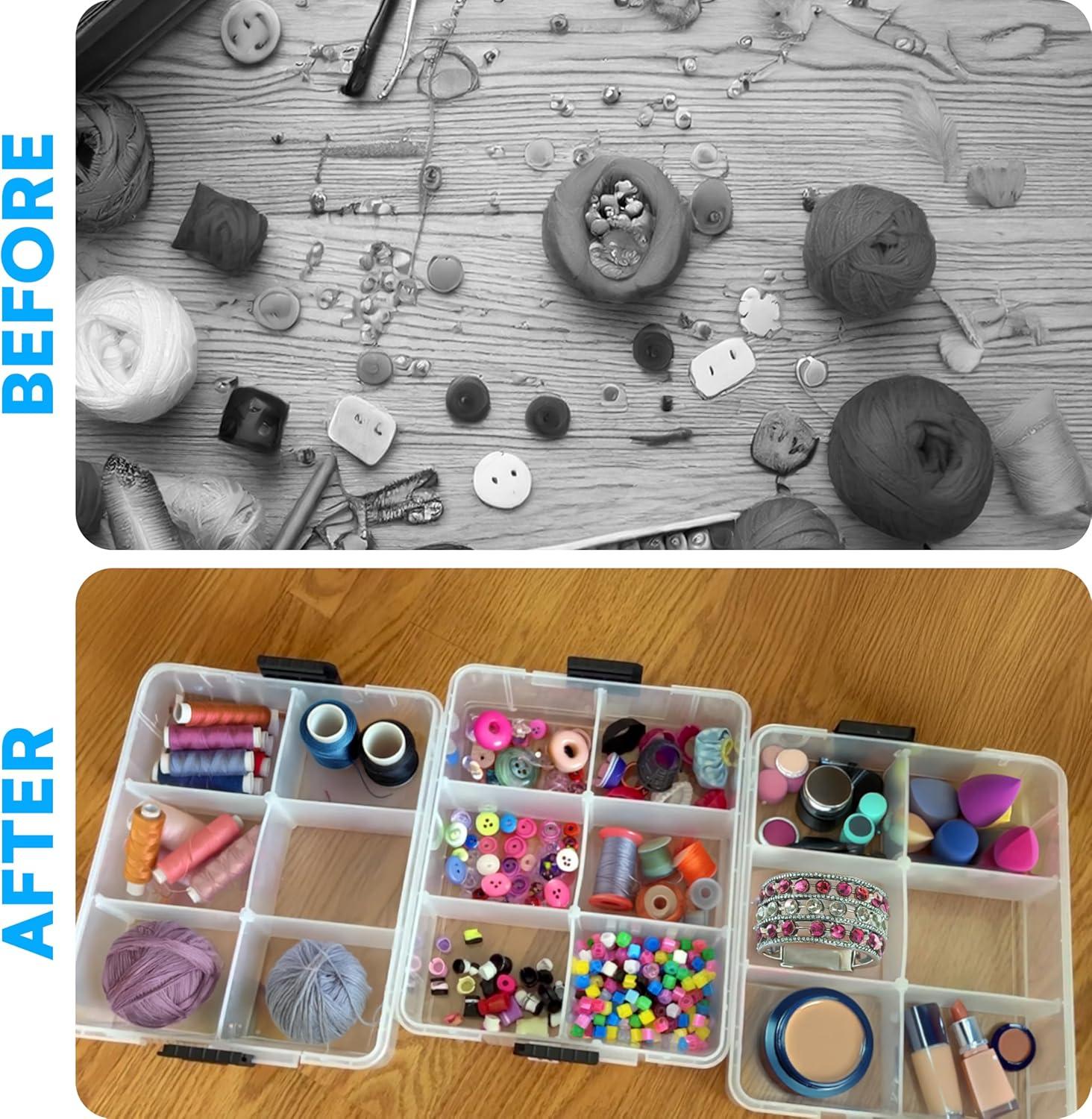 18 Compartments with Adjustable Dividers: Each tier has 6 compartments for organizing; Use as a 10″ x 8.5″ thread organizer or customize for bead storage organizer or small crafting accessories